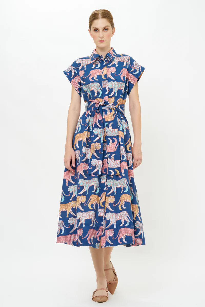 Belted Shirt Dress in Raj Navy