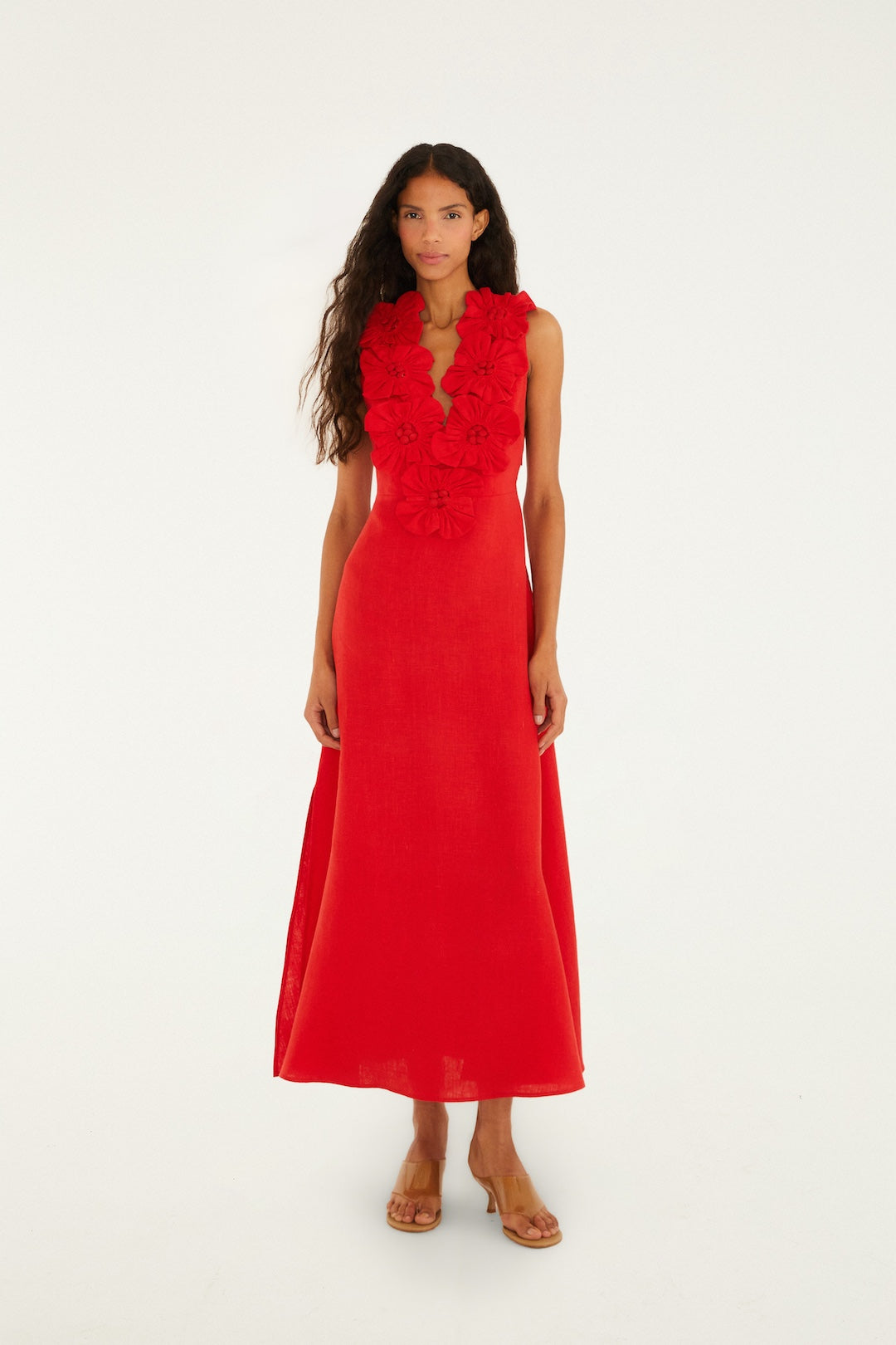 Sleeveless Midi Dress in Red